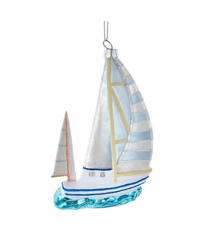 Noble Gems Glass Sailboat On Water Ornament NB1717