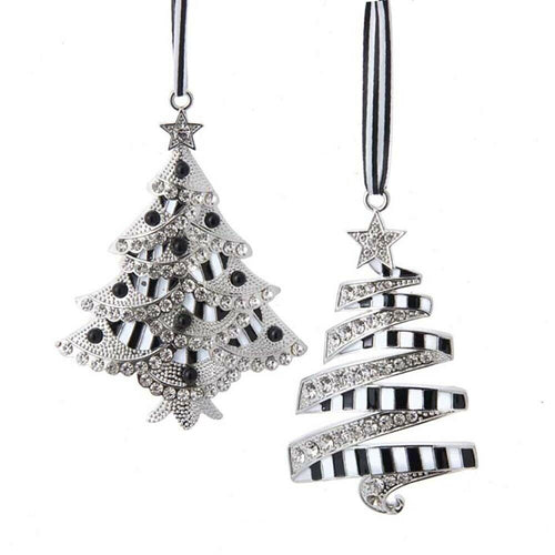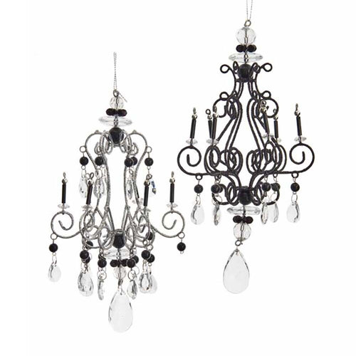 Set of 2 Black and Silver Chandelier Ornaments D3951