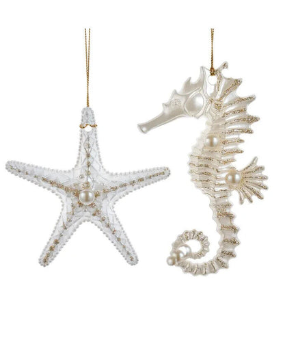 Set of 2 Glittered Sea Horse & Starfish Ornaments T3509