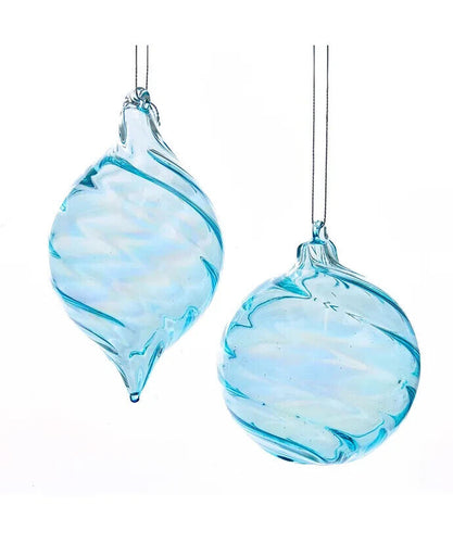 Set of 2 Glass Ice Blue Swirl Ornaments D3149