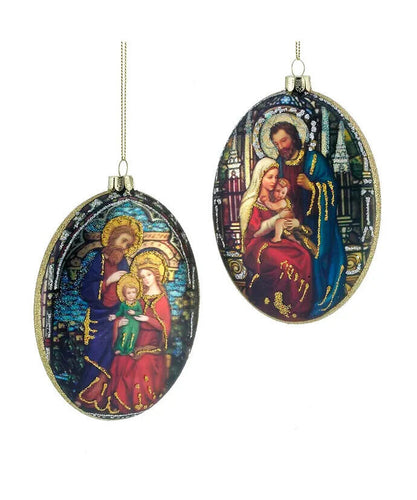 Set of 2 Holy Family Oval Glass Ornaments TD1489