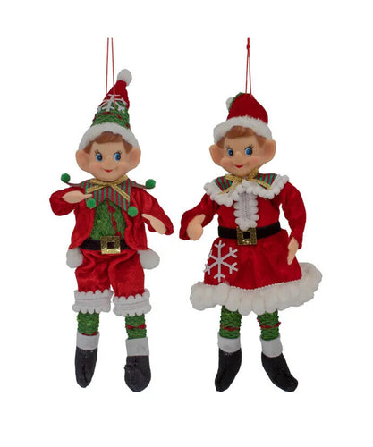Set of 2 Santa Outfit Christmas Elf Ornaments TD1730