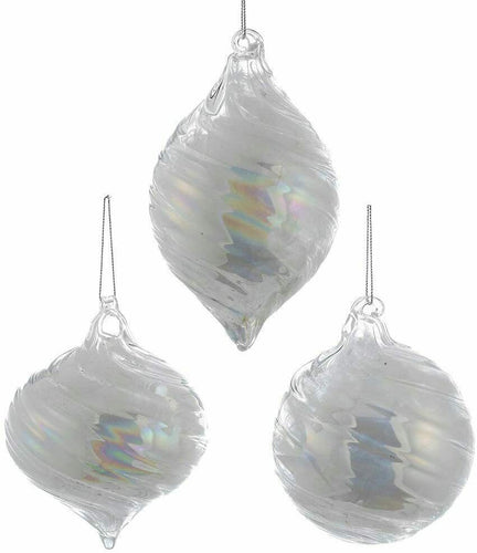 Set of 3 90MM White Pearl Ball, Onion, and Finial Glass Ornaments