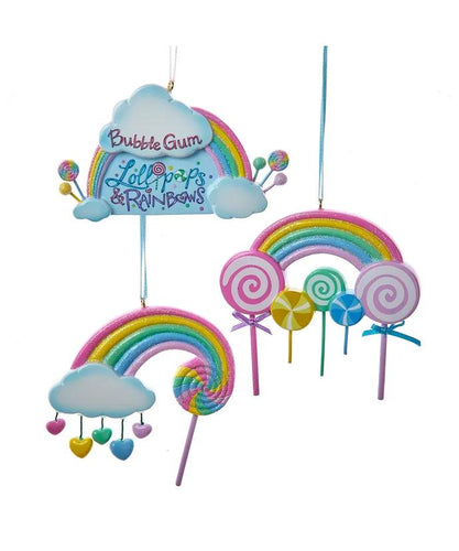 Set of 3 Bubble Gum & Lollipop Rainbow Ornaments A2279