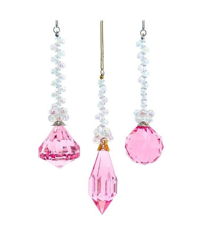 Set of 3 Acrylic Pink Drop Ornaments T3691