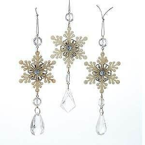 Set of 3 Platinum Snowflake Drop Acrylic Ornaments