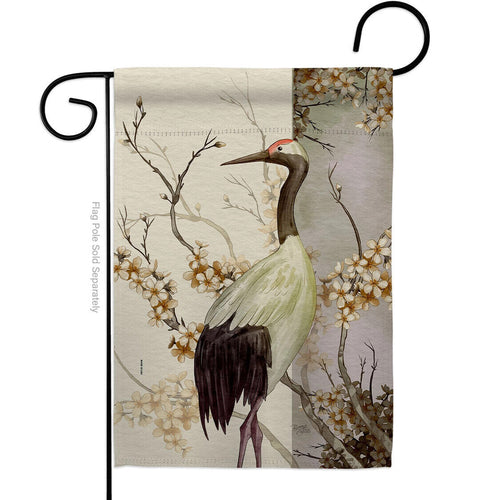 Two Group Flag Flag Red Crowned Crane Bird Oriental Garden House 2-Sided