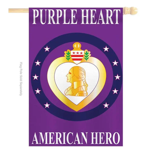 Two Group Flags Purple Heart Armed Forces Military Service House Flag