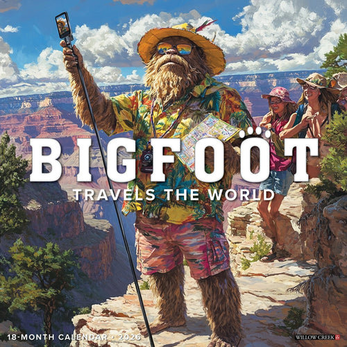 Willow Creek Bigfoot Travels the World 2026 12" x 12" Wall Calendar