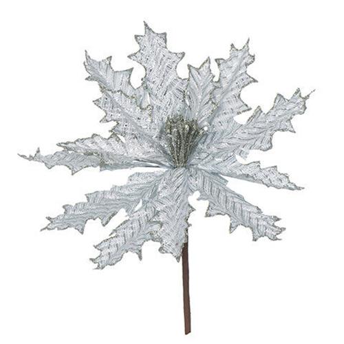 Darice Christmas Poinsettia Pick: Silver, 4 x 12 inches