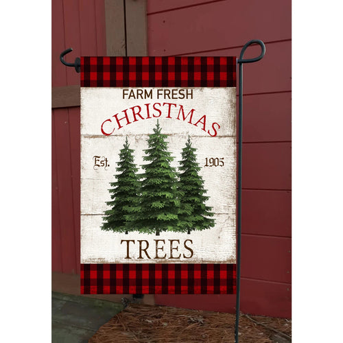 Flags Galore Farm Fresh Trees on Plaid Garden Flag Christmas