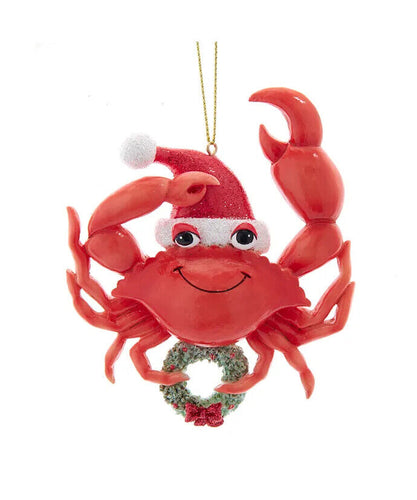 Whimsical Red Sea Crab Holding Wreath Ornament E0624