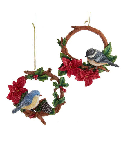 Set of 2 Chickadee and Bluebird Wreath Ornaments E0756