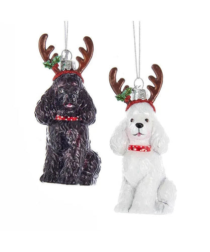 Set of 2 Noble Gems™ Poodles With Antlers Glass Ornaments NB1261PO