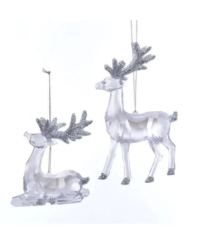 Set of 2 Plastic Clear Reindeer With Glittered Accents T2524