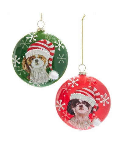 Set of 2 80MM Glass Shih-Tzu Christmas Disc Ornaments D3698SH
