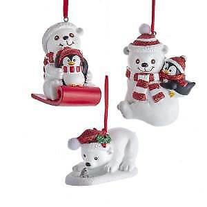 Set of 3 Polar Bear With Fish and Penguin Ornaments