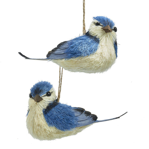 Set of 2 Blue Jay Sisal Bird Ornaments
