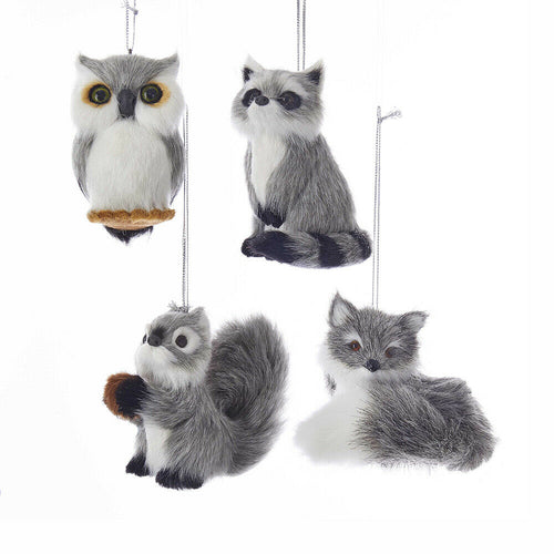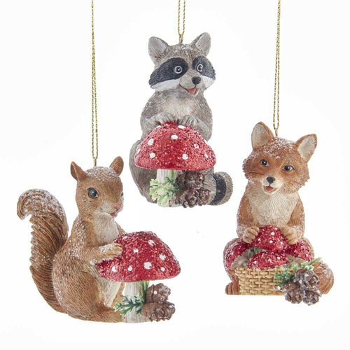Set of 3 Fox, Raccoon and Squirrel With Mushroom Ornaments