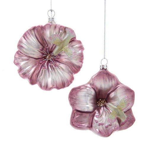 Set of 2 Glass Flower With Hummingbird Ornaments