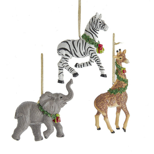 Set of 3 Elephant, Zebra and Giraffe Ornaments