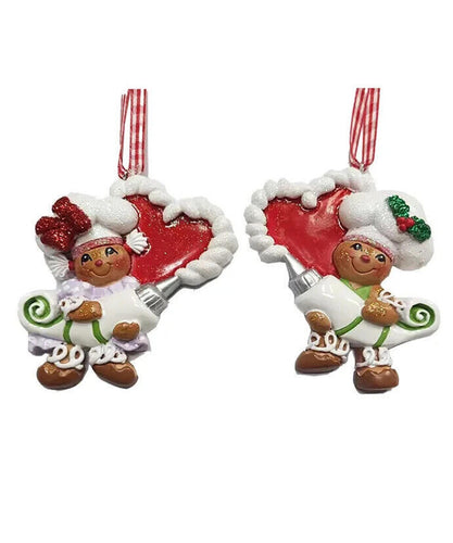 • Set of 2 Gingerbread Boy & Girl With Frosting Heart Ornaments H5679