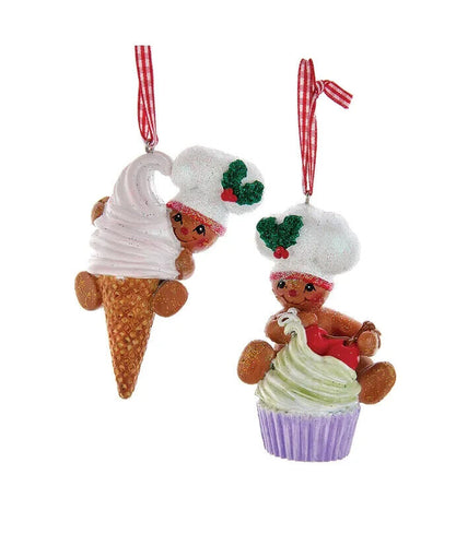 Set of 2 Gingerbread Boy and Girl Ice Cream Ornaments H5649