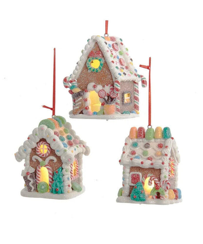 Set of 3 Gingerbread LED Candy House Ornaments D4043