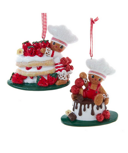 Set of 2 Gingerbread Baker With Cake Ornaments