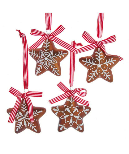 Set of 4 Glass Gingerbread Star With Ribbon Ornaments F2115