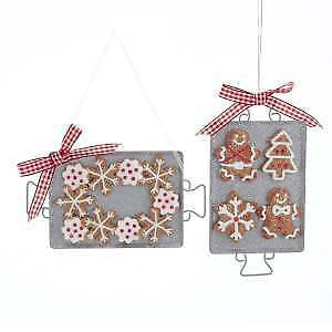 Set of 2 Gingerbread On Metal Tray Ornaments