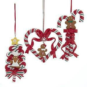 Set of 3 Gingerbread Tree, Heart and Candy Cane Ornaments
