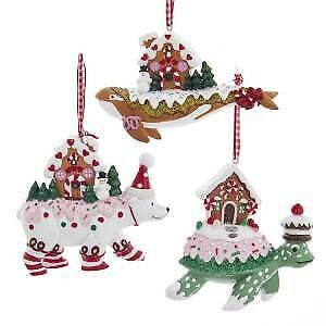Turtle, Polar Bear and Whale With Gingerbread House Ornaments