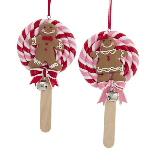 Set of 2 Gingerbread Boy and Girl Lollipop Ornaments