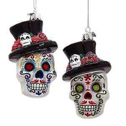 Set of 2 Noble Gems™ Glass Skeleton Head Ornaments NB1499