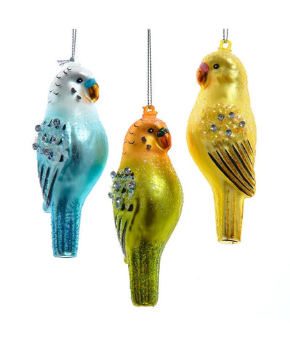 Set of 3 Noble Gems™ Glass Parakeet Ornaments NB1761