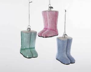 Set of 3 Noble Gems Pastel Pink/Green/Blue Fashion Boot Glass Ornaments