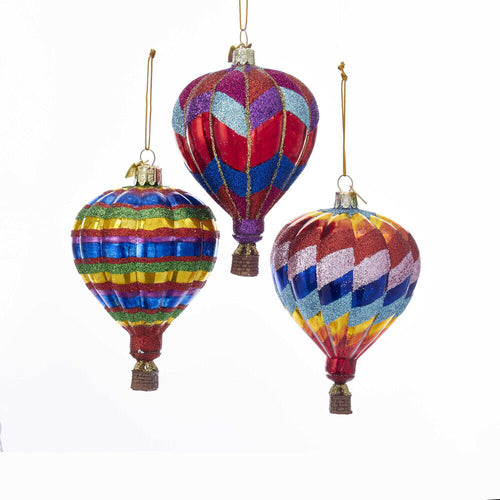 Set of 3 Noble Gems Hot Air Balloon Glass Ornament NB1285