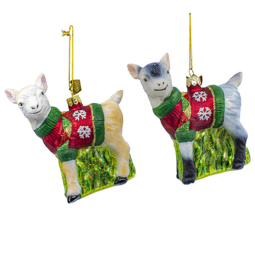 Set of 2 Noble Gems™ Baby Goat With Sweater Ornaments
