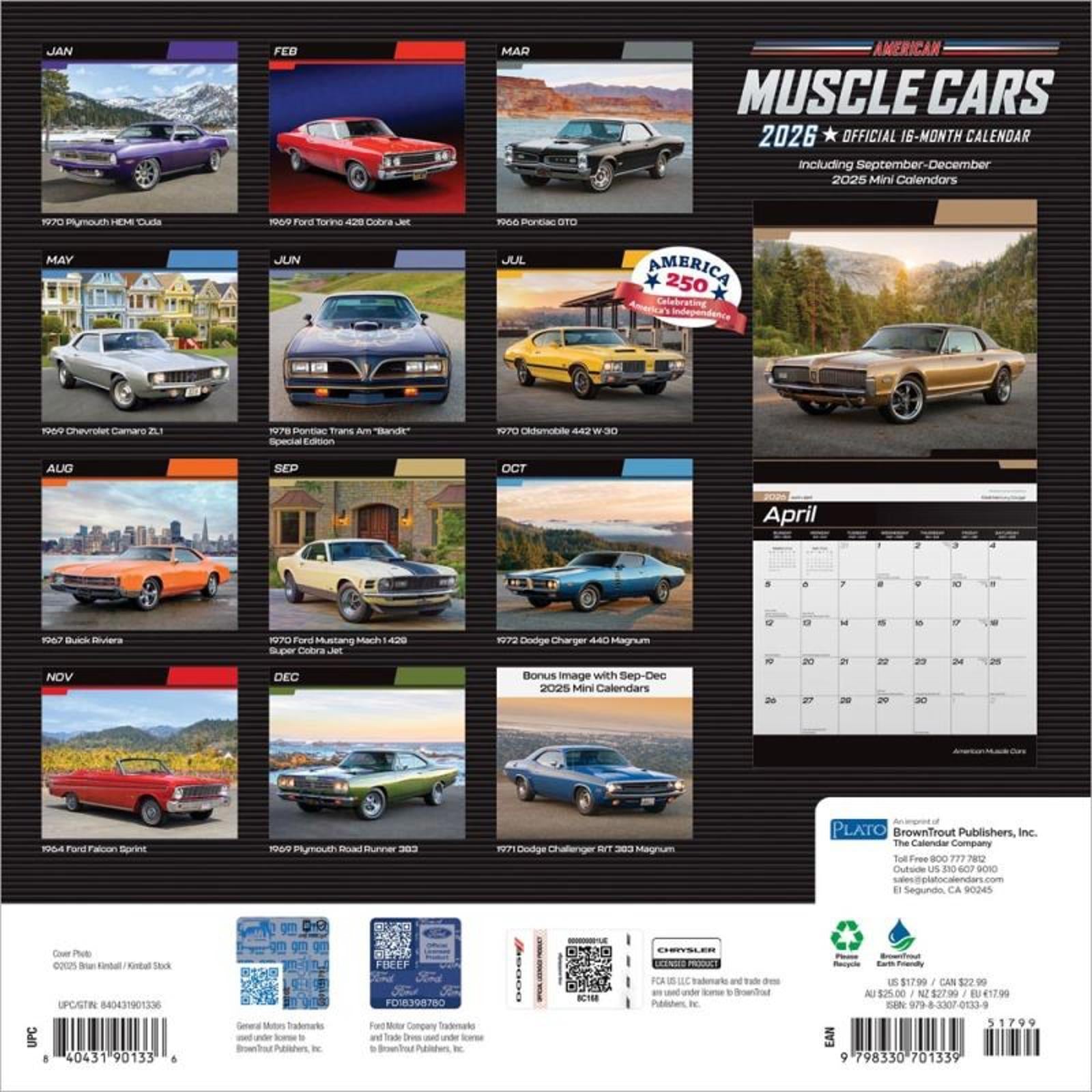 Browntrout American Muscle Cars OFFICIAL 2026 12 x 12 Wall Calendar