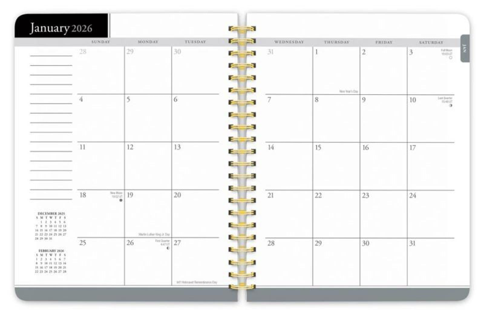 Busy people on the go rely on these 12-month desk planners to stay organized year round. Measuring 6" wide x 7.75" tall, with pleasing, colorful designs, they feature January–December monthly calendars with two-page weekly planning spreads. The practical yet unique planner layout makes daily, weekly, and monthly planning a cinch, while offering additional pages to jot down monthly goals, weekly to-do lists, daily appointments—and more! Sturdy and wire bound, it's easy to carry in a purse, backpack, or briefcase.