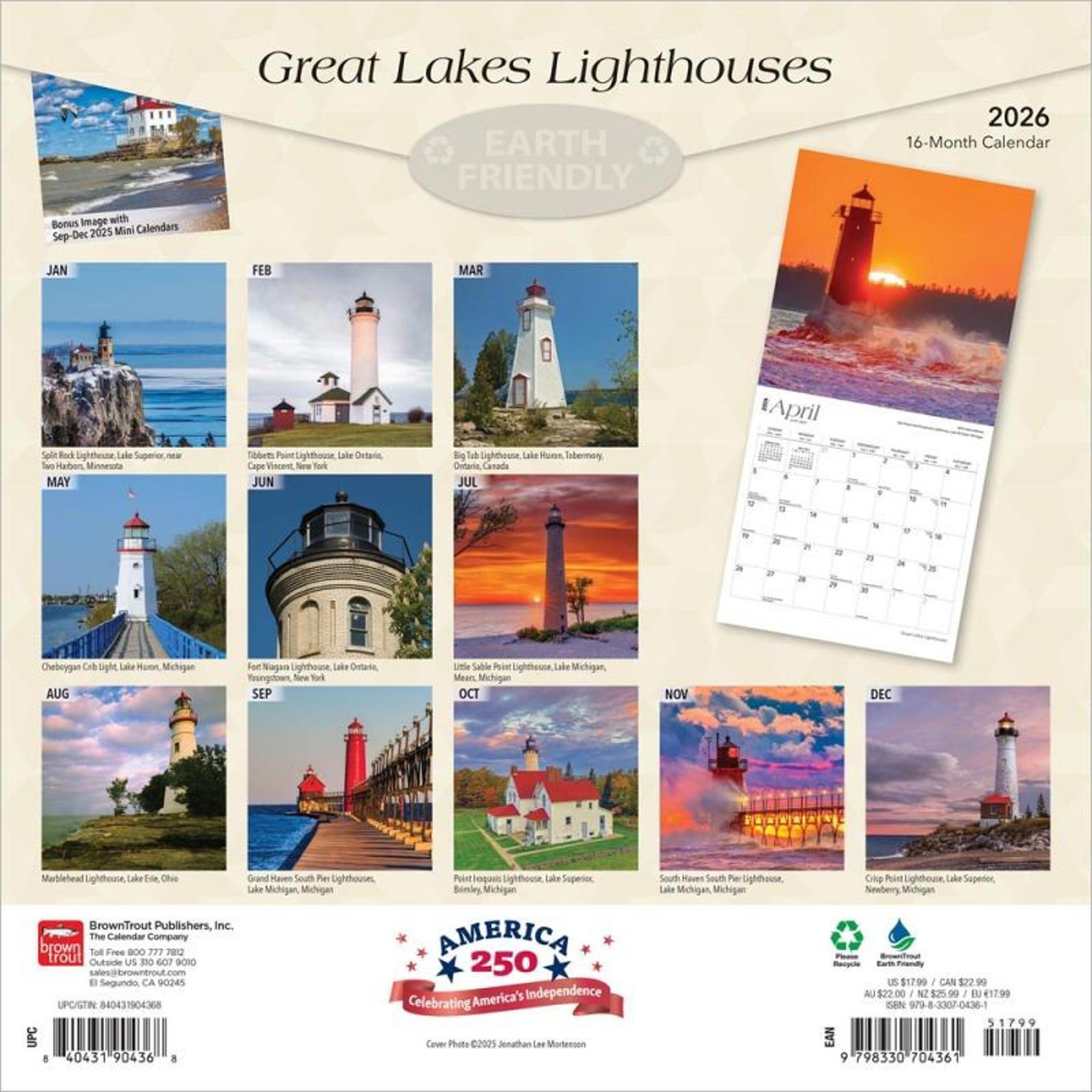 Browntrout Great Lakes Lighthouses 2026 12 x 12 Wall Calendar
