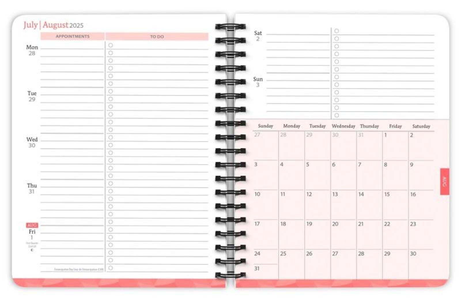 Busy people on the go rely on these premium, 18-month planners to stay organized. Measuring 6" wide x 7.75" tall, with pleasing, one-color interiors, the Plato desk planner offers more than the usual with a full 18 months' worth of two-page weekly planning spreads. The practical yet unique planner layout makes daily, weekly, and monthly planning a cinch, while offering additional pages to jot down monthly goals, weekly to-do lists, daily appointments–and more! Sturdy covers are adorned with eye-catching foil highlights and smooth, radius corners. Wire bound and easy to carry in a purse, backpack, or briefcase.