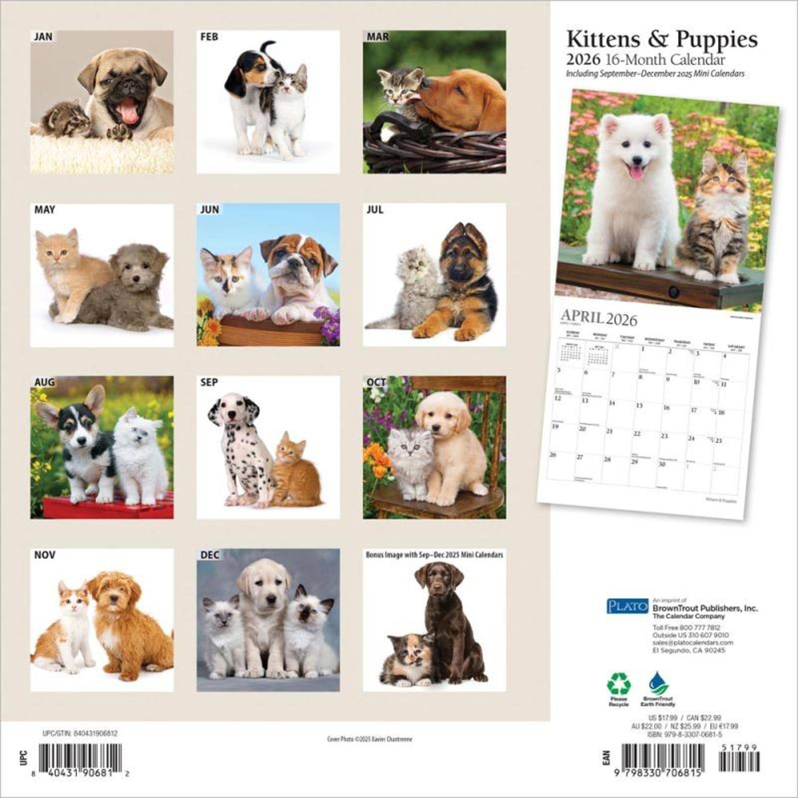 Browntrout Kittens & Puppies 2026 12 x 12 Wall Calendar