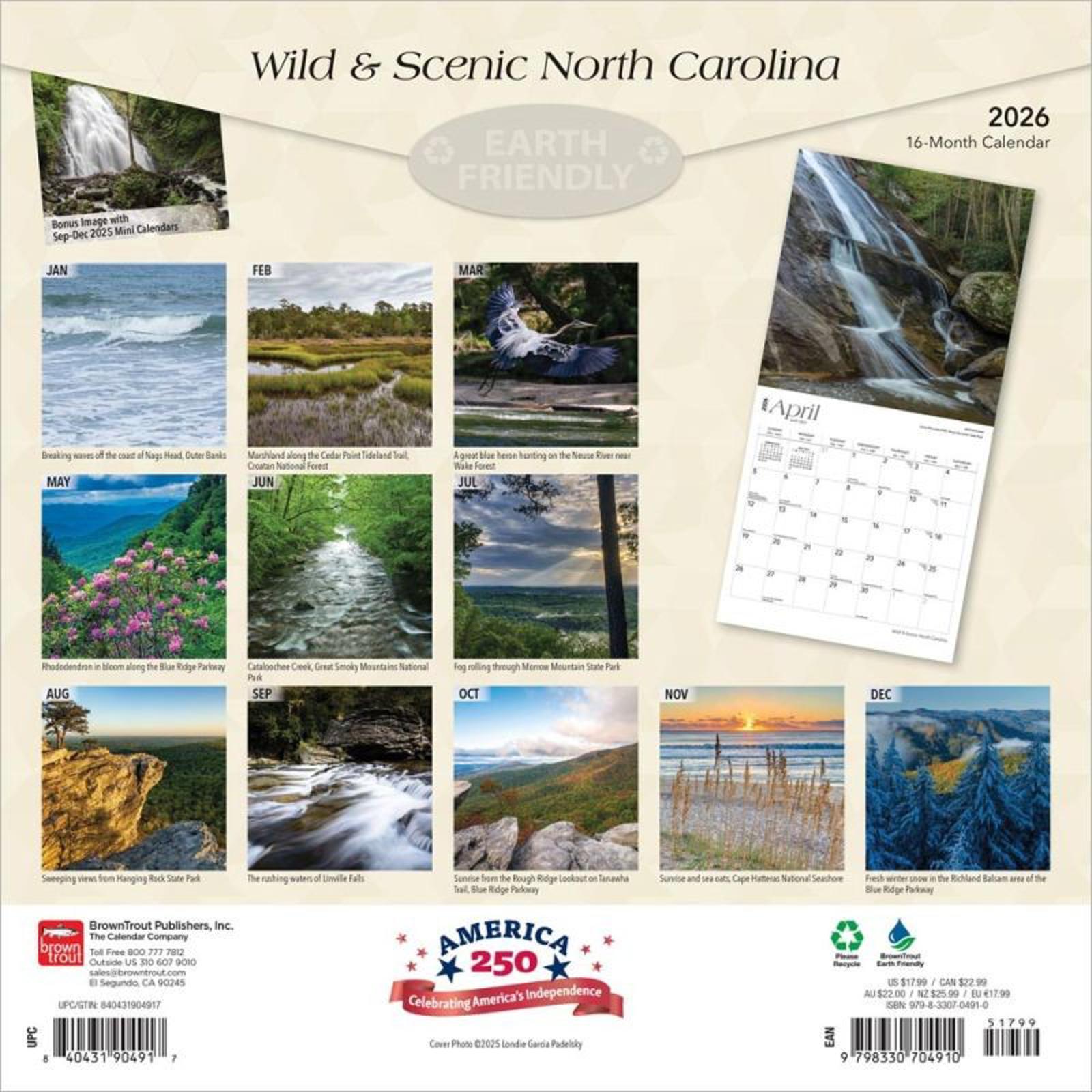 Browntrout North Carolina Wild & Scenic 2026 12 x 12 Wall Calendar