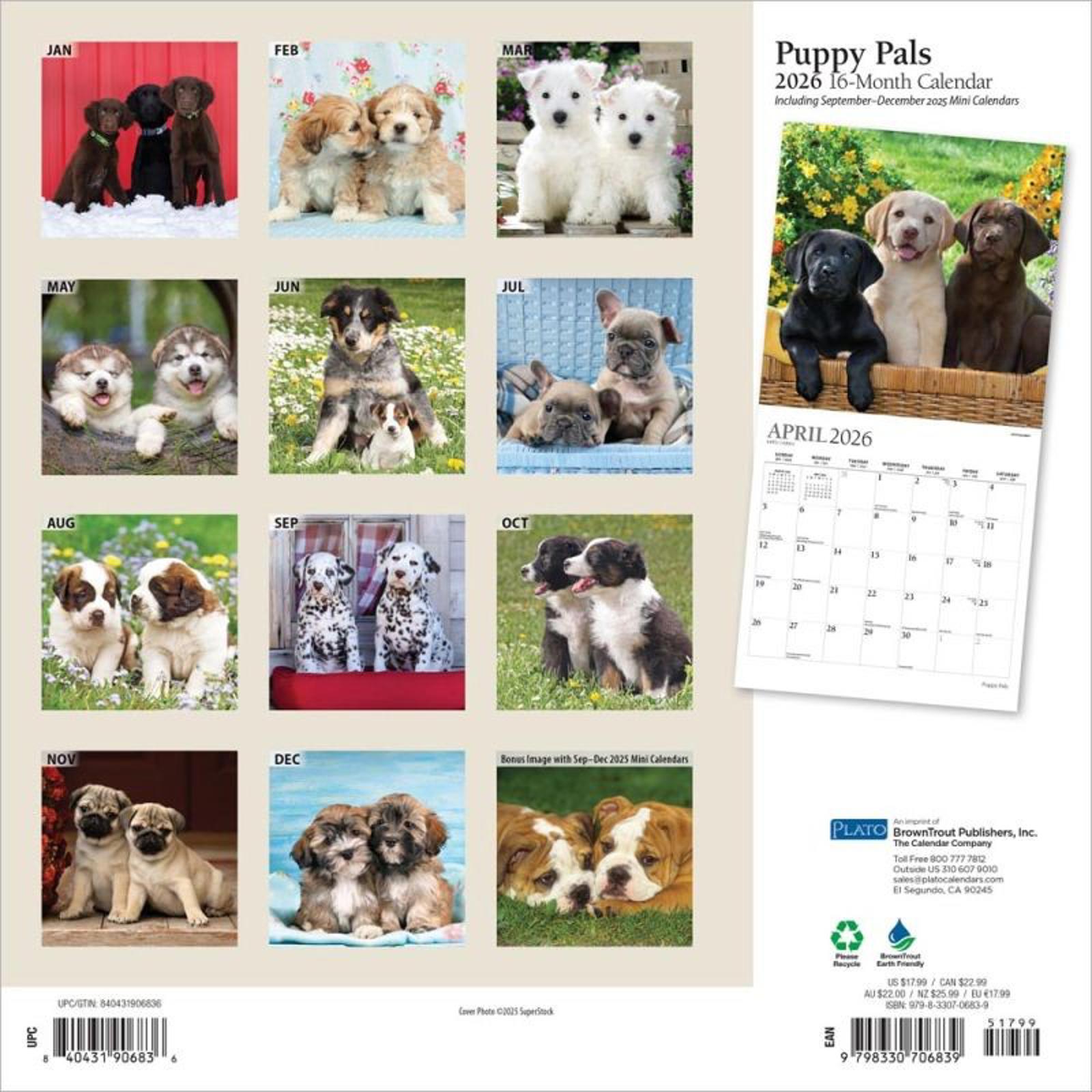 Browntrout Puppy Pals 2026 12 x 12 Wall Calendar