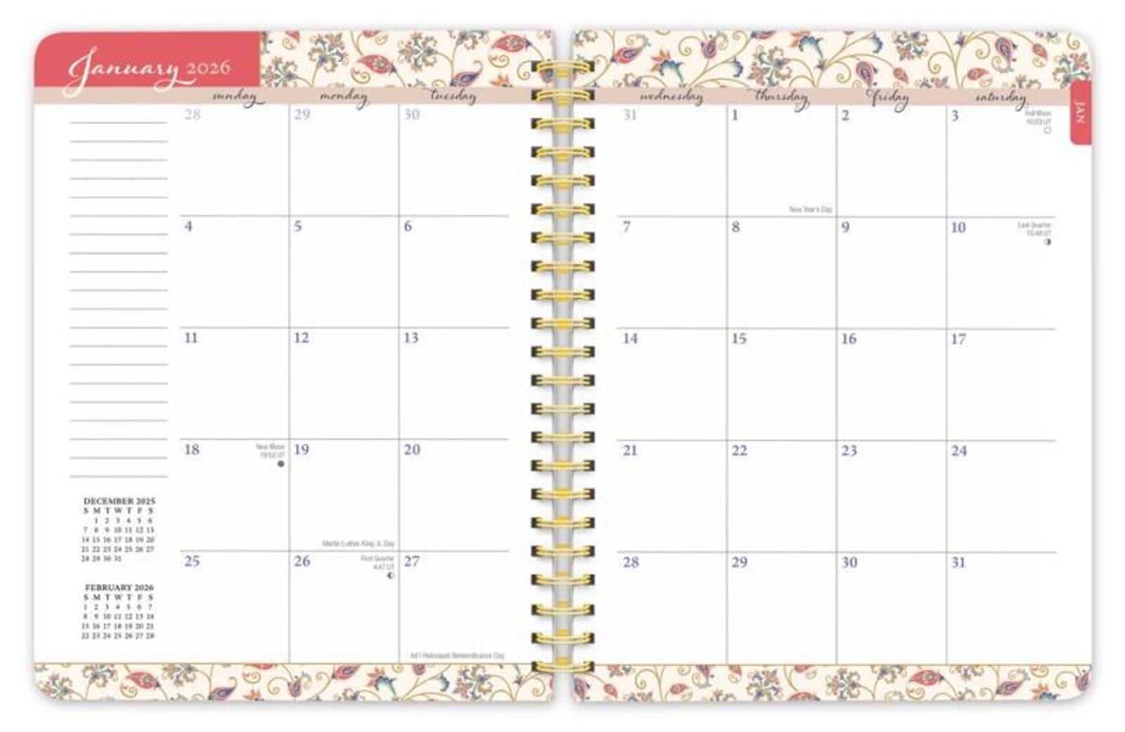 Busy people on the go rely on these 12-month desk planners to stay organized year round. Measuring 6" wide x 7.75" tall, with pleasing, colorful designs, they feature January–December monthly calendars with two-page weekly planning spreads. The practical yet unique planner layout makes daily, weekly, and monthly planning a cinch, while offering additional pages to jot down monthly goals, weekly to-do lists, daily appointments—and more! Sturdy and wire bound, it's easy to carry in a purse, backpack, or briefcase.