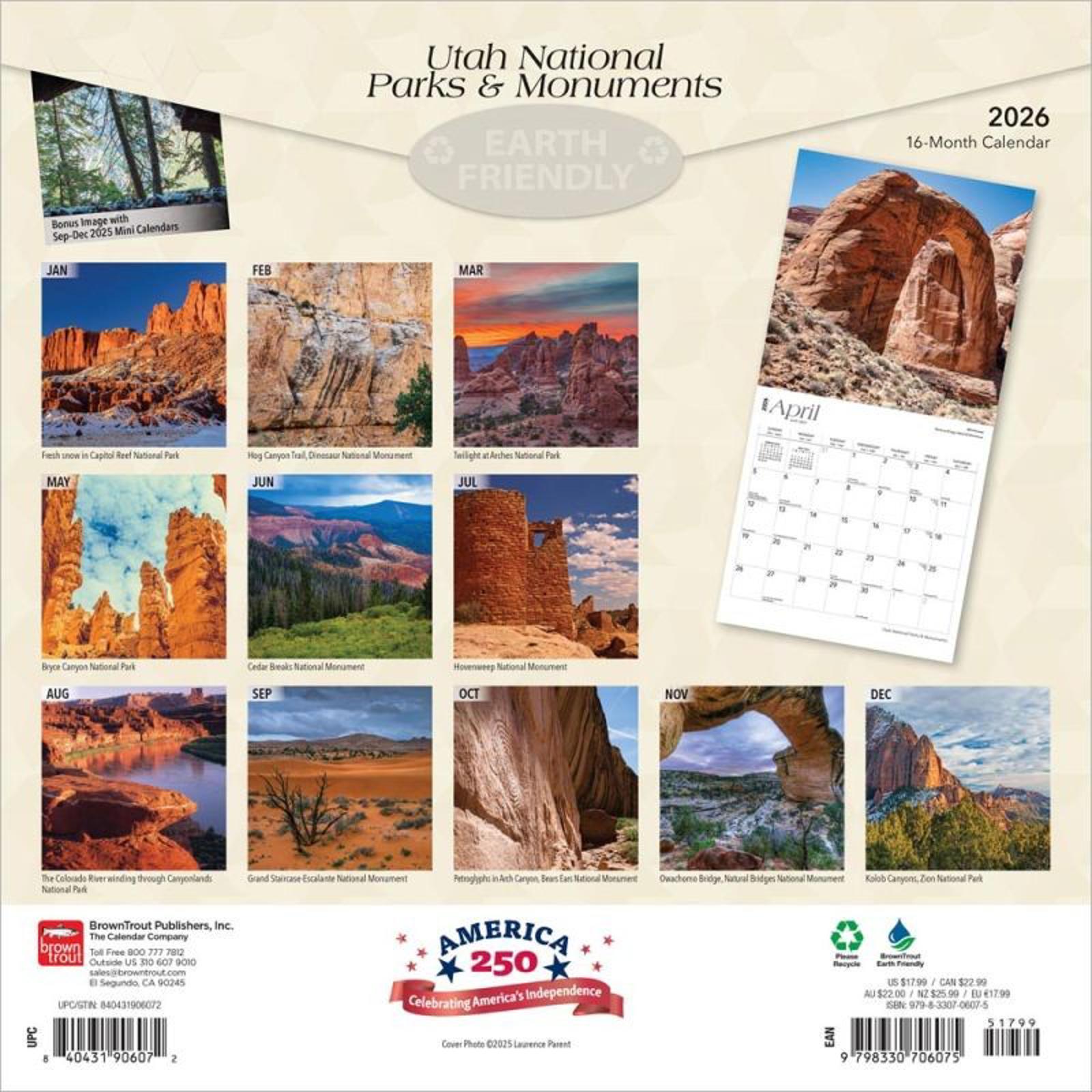 Browntrout Utah National Parks & Monuments 2026 12 x 12 Wall Calendar