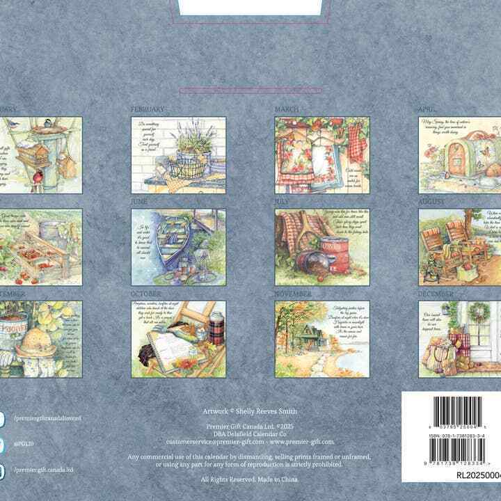 Delafield wall calendar with 12 different images (January - December). Printed on linen embossed paper. Brass hanging grommet to prevent calendar tear. Linen embossed jacket. Size 13.3/8"w X 24"h - when opened. Fit your calendar frame.