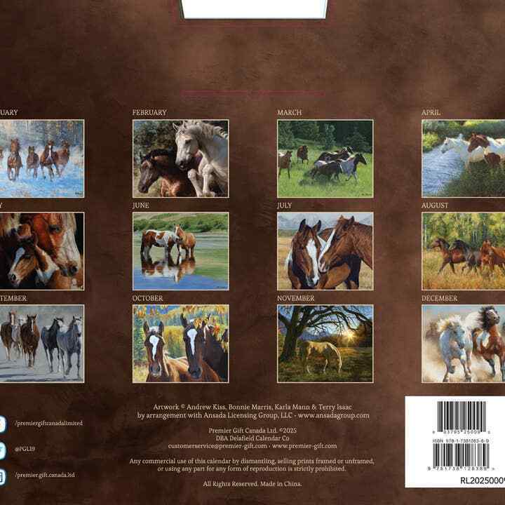 Delafield wall calendar with 12 different images (January - December). Printed on linen embossed paper. Brass hanging grommet to prevent calendar tear. Linen embossed jacket. Size 13.3/8"w X 24"h - when opened. Fit your calendar frame.